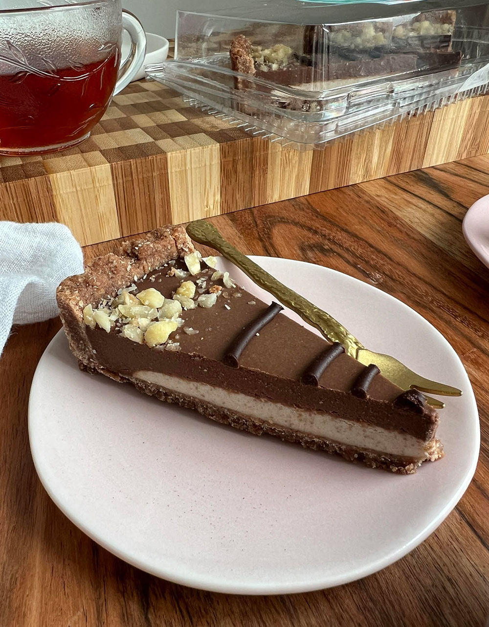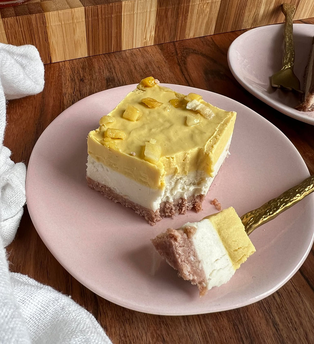 De bite van de taartjes is heel goed. Stevig, maar geen harde bodem zoals sommige van dit soort raw taartjes hebben. Je kunt er makkelijk met je vorkje in prikken en de smaak is romig en heel erg lekker. Niet te zoet, wat mij betreft precies goed! Ik heb zowel de cacao hazelnoot als de aardbei en passievrucht mango taartjes geprobeerd, ik verwacht dat de taartjes met cacao en tiramisu smaak ook erg lekker zullen zijn. Mijn favoriet is het cacao hazelnoot taartje, vooral de korst daarvan is zo ontzettend lekker.