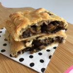 Verdeel het champignon mengsel over de twee stukken bladerdeeg: laat aan de zijkant een stuk over, vouw het bladerdeeg dicht, druk aan met een vork en bestrijk dan met een bakkastje de randen en de bovenkant met wat plantaardige melk.