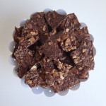 Giet het mengsel in het bakblik en zet een kwartier in de vriezer tot de chocolade hard is. Breek in stukken. Bewaar in de vriezer.