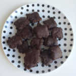 Smelt de chocolade au bain marie of in de magnetron. Doop de caramelblokjes in de chocolade met behulp van een vork en leg daarna op een bord of schaal bekleed met bakpapier.