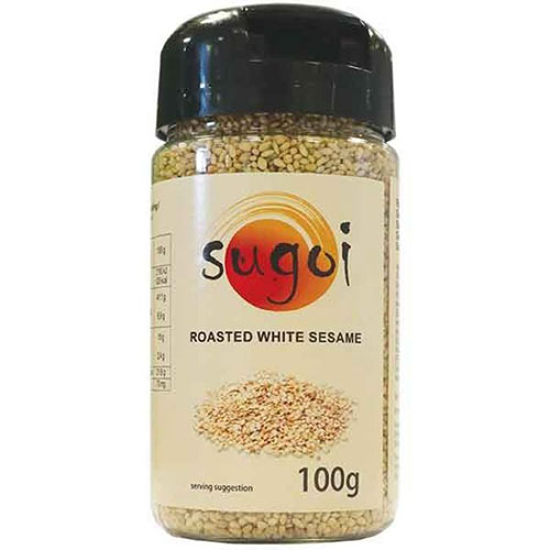 Deze strooier met geroosterde sesamzaadjes gebruik ik voor van alles! Heerlijk over noodlesoep bijvoorbeeld.