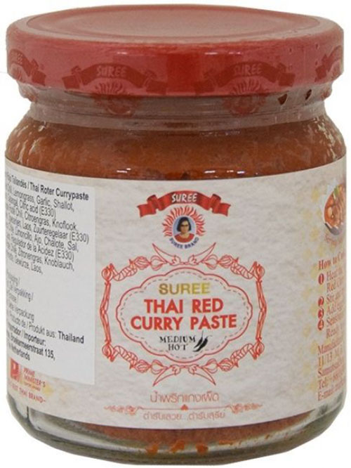 Met currypasta’s is het altijd opletten voor een veganistische variant, want veel soorten bevatten ingrediënten als garnalenpasta. Ik ben hierbij niet merkvast, maar af en toe neem ik deze en die smaakt goed. Dit zijn de ingrediënten: Gedroogde Rode Chili 30%, Citroengras 20%, Knoflook 15%, Sjalot 15%, Zout 8%, Kaffir Limoen 5%, Specerijen 4%, Laos 3%, Zuurteregelaar (E330).