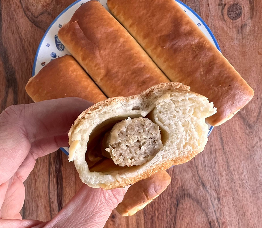 Het brood is zacht en aan de buitenkant een beetje knapperig. De bite is ook goed. Er had van mij wat meer van de plantaardige worst in gemogen, of in elk geval wat platter gemaakt. Het is nu in de vorm van een vrij dunne worst en daardoor heb je aan de zijkanten alleen deeg. Ook had het een stuk meer gekruid mogen zijn maar ook dat is persoonlijke smaak natuurlijk. Ik vind de smaak verder prima!