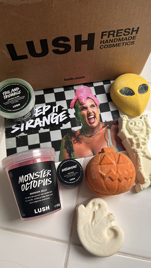 Al sinds ik het bestaan ervan weet, zeker zo’n 20 jaar geleden ben ik groot fan van Lush. Ik hou van de producten, de geweldige productnamen met knipogen, de positiviteit en nou ja gewoon alles. Nog ver voordat we de luxe hadden van een filiaal dichtbij hier in Rotterdam en Den Haag ging ik er zelfs helemaal voor naar Amsterdam. Ja, echt! Je zal dus niet raar opkijken dat mijn hart ook dit jaar weer een sprongetje maakt van de Halloween collectie. Een van mijn favoriete beauty merken in mijn favoriete seizoen: I love it. Wat een beauties allemaal, met de Monster Octopus als favoriet. Deze ruikt zalig naar zwarte bessen en vanille. Ik ben heel blij met dit pakket dat ik ontving om te proberen van Lush! Bekijk alle producten uit de Halloween collectie op deze pagina.