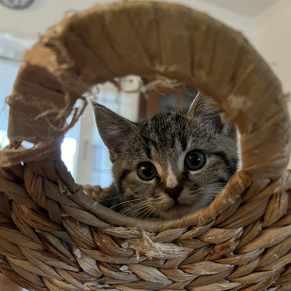 Lang verhaal kort: het lukte uiteindelijk na heel veel geduld, de poes (niet gechipt en graatmager) en haar kittens werden opgevangen door de stichting, nagekeken en verzorgd. Moederpoes stond nergens vermeld als vermist en ze werd uiteindelijk gesteriliseerd en gechipt. De moederpoes en haar kittens zijn allemaal heel goed terecht gekomen, waaronder eentje dus bij ons.