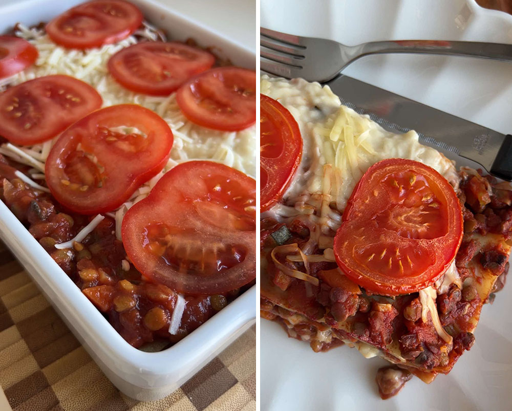 Voor deze heerlijke goedgevulde lasagne bolognese gebruikte ik linzen in plaats van gehakt. Een voedzaam en betaalbaar alternatief!