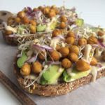 Een heerlijke getoaste boterham met tahin (sesampasta), avocado en geroosterde kikkererwten. Een geweldige combinatie die kan als lunch of met een kop soep als avondmaaltijd!