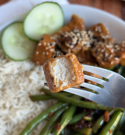 Video – bekijk hoe je deze tofu in pindasaus maakt!