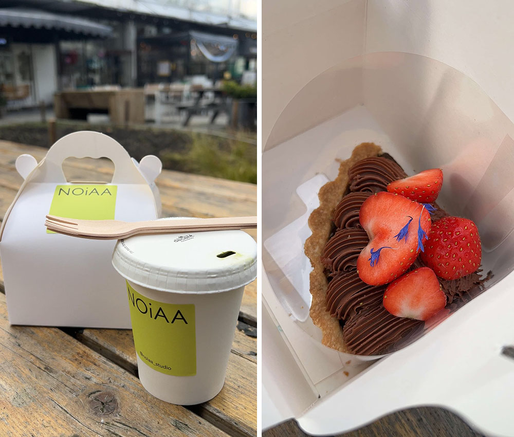Ik had over de matcha van NOiAA goede dingen gelezen en wilde dit graag proberen, ook omdat ik benieuwd was naar de vegan taartjes hier. Ik kan bevestigen dat de matcha echt ontzettend lekker is, niet zo’n bittere smaak als veel matcha’s hebben maar echt heel erg goed. Ik dronk ‘m warm met havermelk, koud kan natuurlijk ook. En daarbij koos ik de vegan Sweet Oasis: een fruit taartje met vegan chocolade tofu crème op een sponscake met Earl Grey en gedroogde vijg. Dit was echt heel erg smaakvol en je proeft de liefde die hier in is gestoken bij het maken. NOiAA is gevestigd aan de Pannenkoekstraat 99A en dat is vlakbij station Blaak. Hier vind je nog meer leuke hotspots zoals Spirit en Kelly’s Expat Shopping!