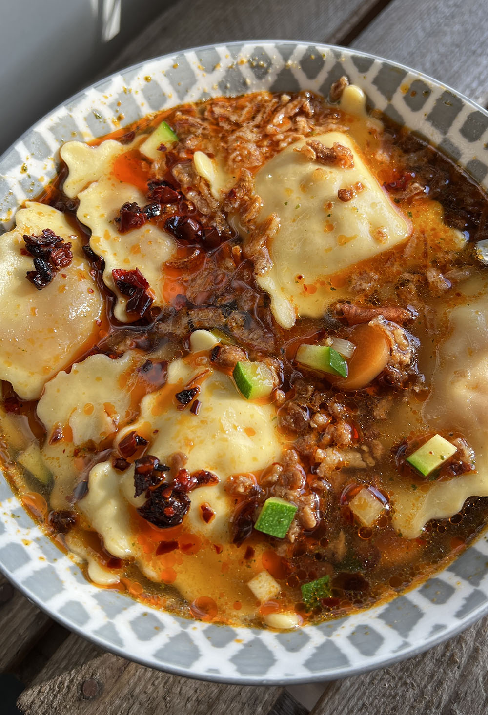 Groentesoep met gevulde pasta