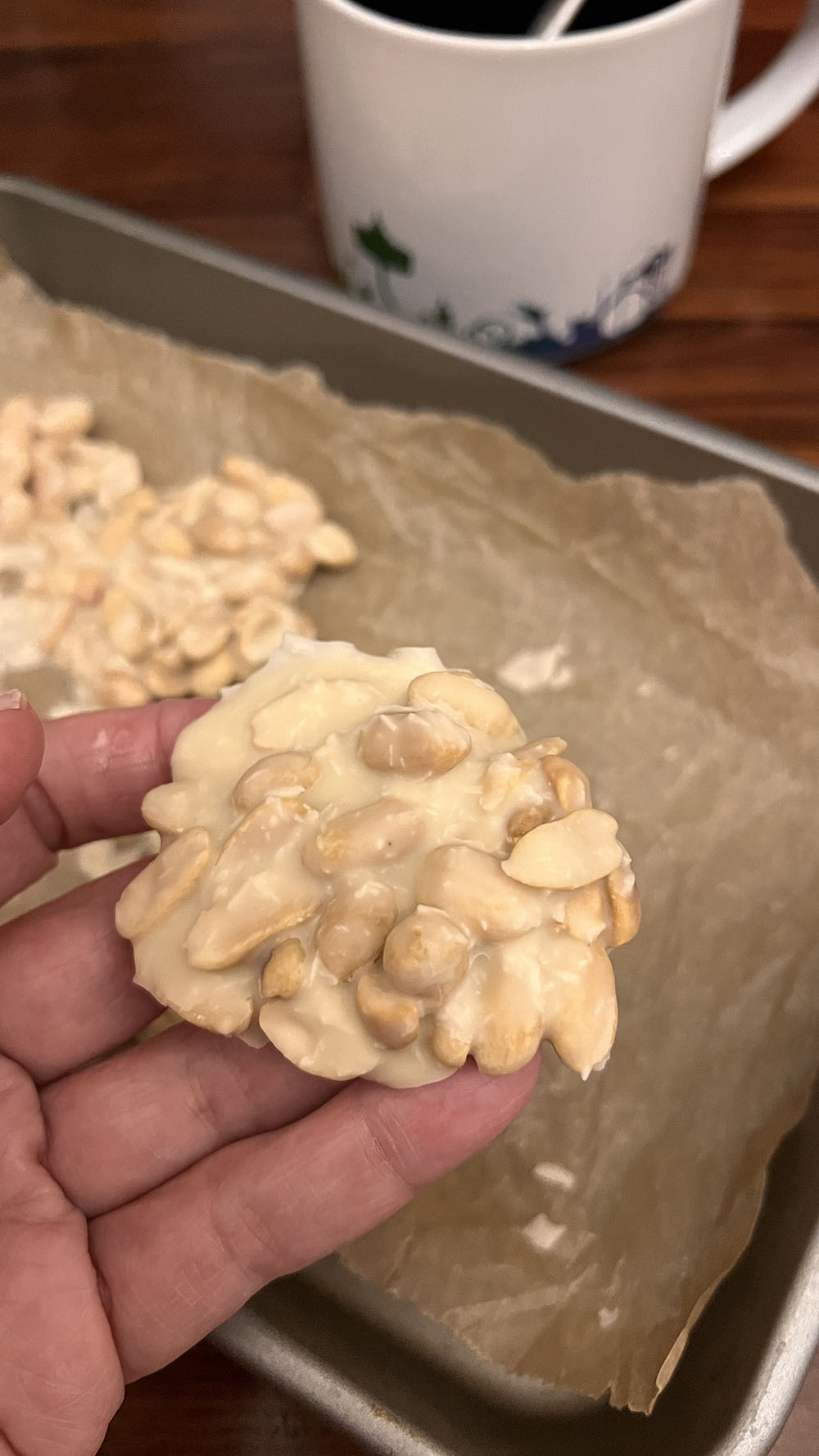 Thee met witte chocoladerotsjes met kokos