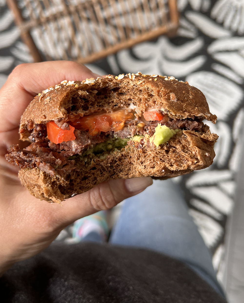 Dit is zo lekker, superdunne burgers met zwarte bonen. Ik at het op een donker zacht bolletje van AH met vegan mayonaise, tomaat en avocado. De burgers zijn makkelijk om te maken met een minimaal aantal ingrediënten. Ik maak er meteen een heleboel voor in de vriezer. Het recept volgt!