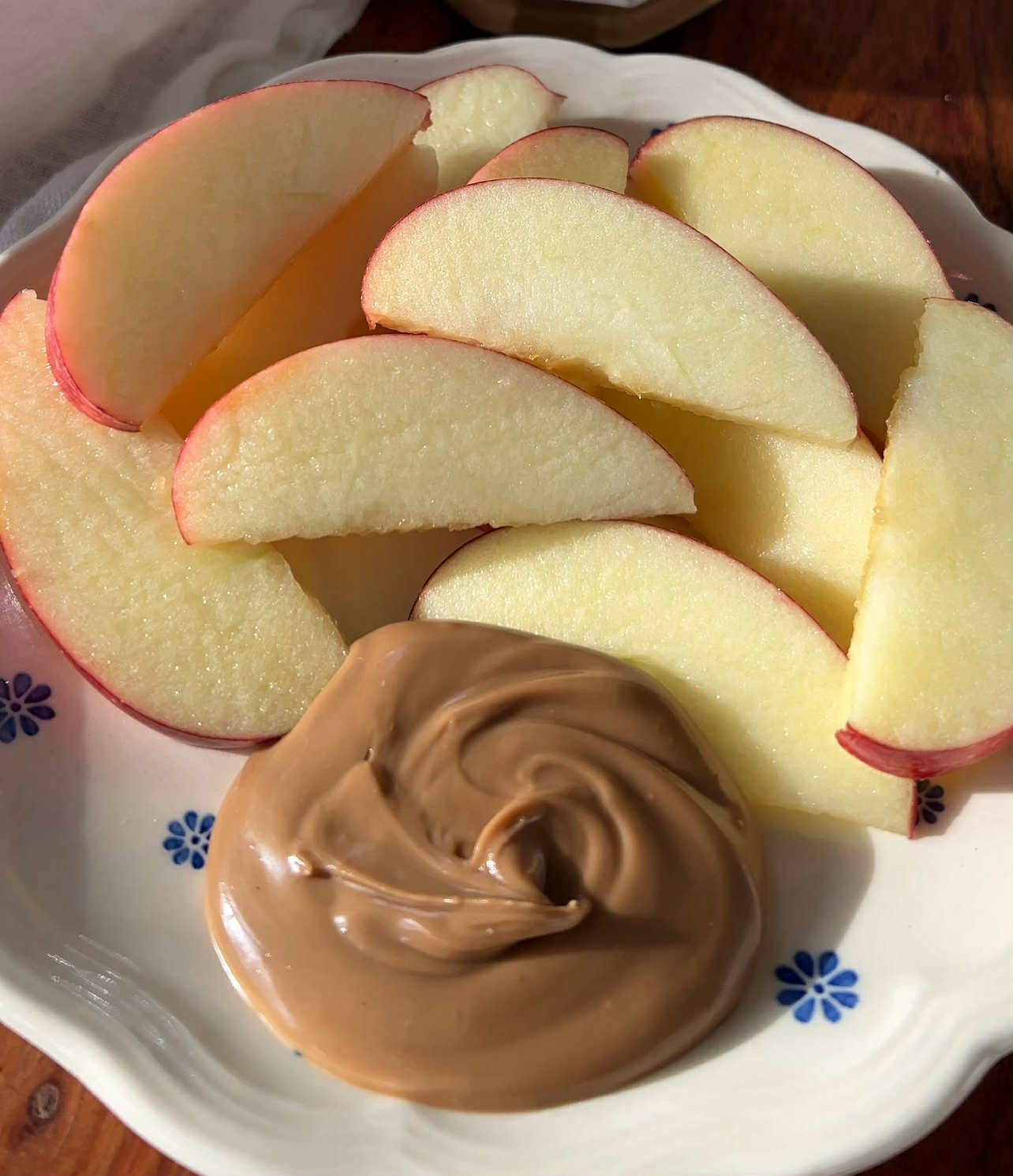 Wat een heerlijke combinatie: partjes appel met de hazelnoot- en cashewspread van Natù.