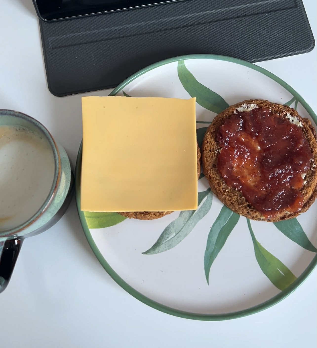 Daarop smeerde ik een laagje Alpro smeerbaar (plantaardige boter) met aardbeienspread en plantaardige kaas. De aardbeienspread is van Natù en is gemaakt van rijpe biologische aardbeien. Het is zonder toegevoegde suiker en kunstmatige zoetstoffen en bevat 95% fruit. Verkrijgbaar bij Albert Heijn in diverse smaken!