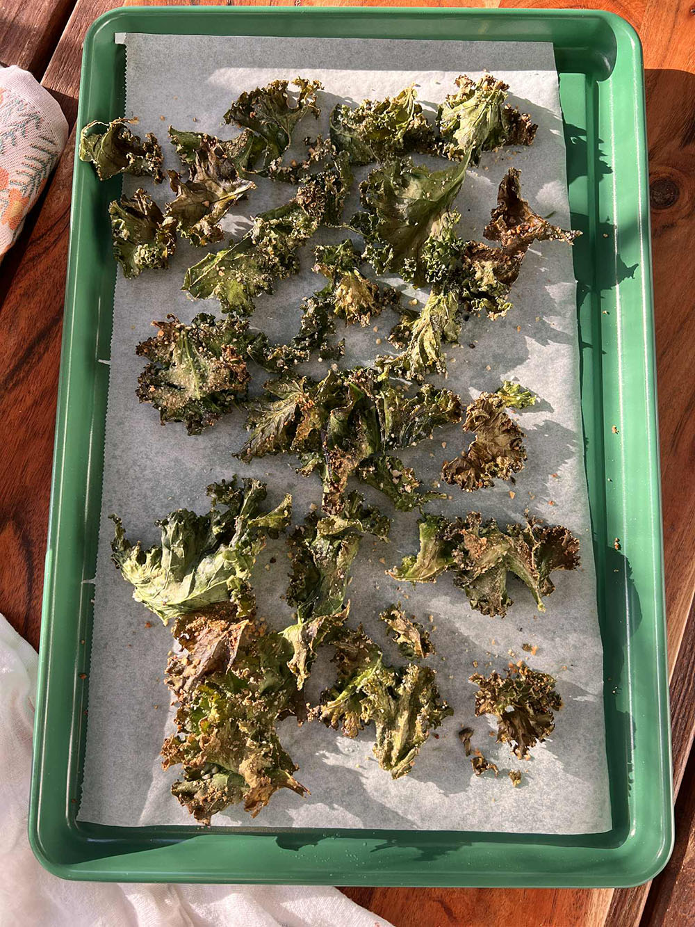 Het is er weer tijd voor: verse boerenkool! Ik maak hier graag boerenkoolchips uit de oven mee.