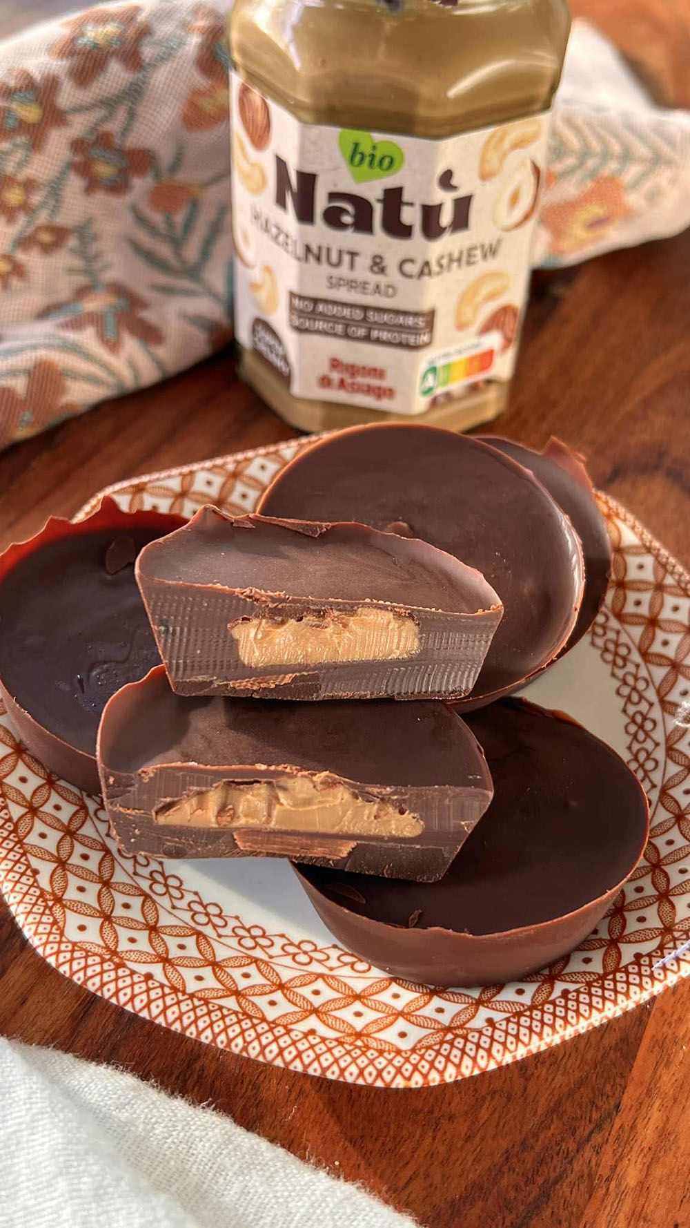 Chocolade cups met hazelnoot- en cashewnoten vulling