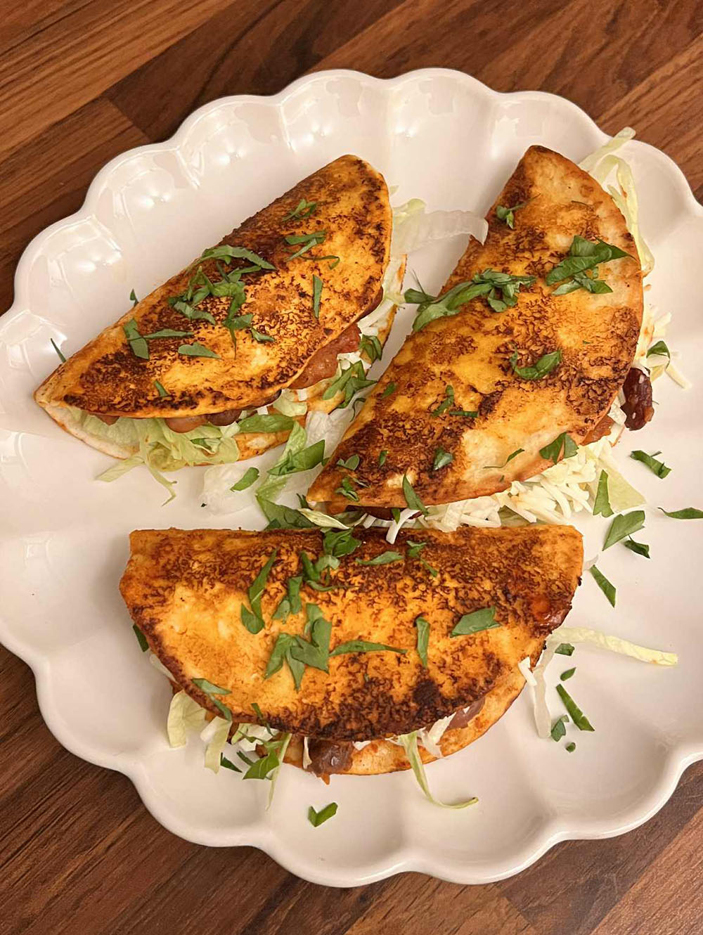 - Verhit wat olie in een koekenpan en bak de taco’s aan beide kanten goudbruin.
